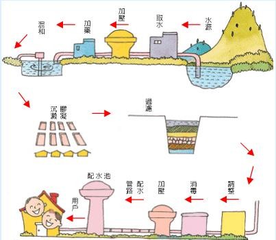 淨水:將水源地收集後的水淨化,供民眾使用
