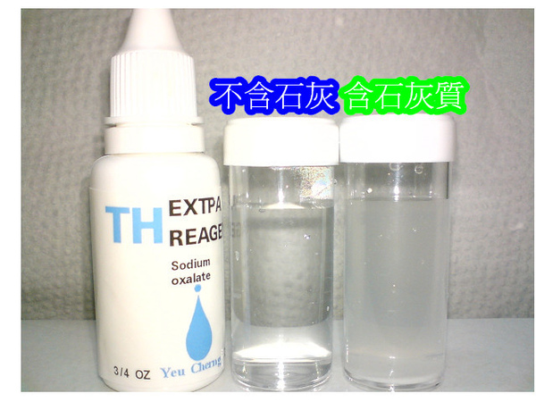 左手邊過濾出來後已不含石灰質,右手邊自來水含石灰質