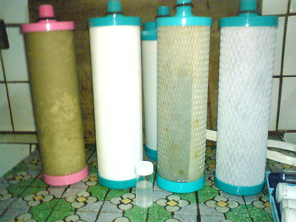 上圖為~左手邊兩支鎖牙棉質濾心更換前後~右手邊兩支鎖牙壓縮活性碳濾心更換前後~